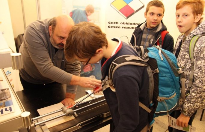 Cech tam společně s ostatními spolky prezentuje řemeslo tak, že se na každém stánku plní úkol a pokud návštěvník splní všechny úkoly je soutěžní lístek zahrnut do slosování o hodnotné poukázky na odběr sportovního zboží. U nás zkoušeli řezat obkládačky pomocí ruční řezačky, kterou poskytla RUBI.