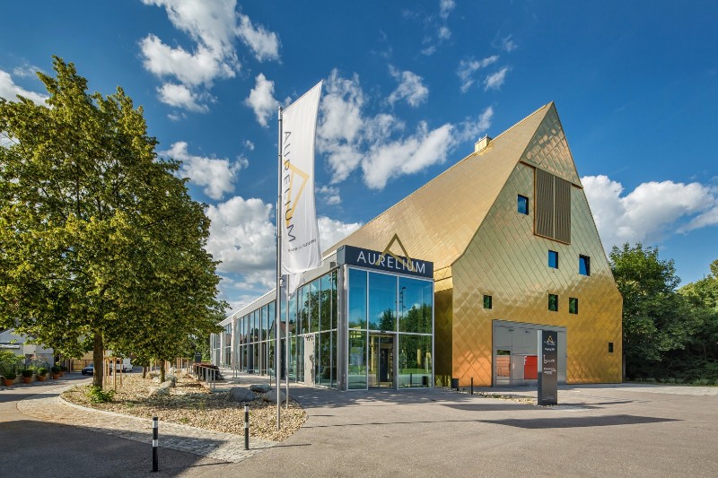 Ve jméně kulturního centra Aurelium v Lappersdorfu u Řezna se mísí latinský název pro zlato „Aurum“ a jméno císaře Marca Aurelia, který je považován za zakladatele Řezna, pevnosti na řece Regen. I samotná stavba Aurelia v sobě pojí metalický lesk s historií: Nové centrum má fasádu a střechu ze zlatě se lesknoucích prvků z měděného plechu. Díky nim září do daleka a mění barvu v závislosti na denním světle.