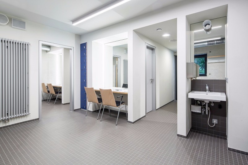 Zlatě zářící zvenčí, elegantně střídmé uvnitř: Nové kulturní a komunitní centrum „Aurelium“ v bavorském Lappersdorfu spojuje tradici s odvahou vytvořit něco výjimečného. Neglazované slinuté dlaždice Taurus z programu RAKO OBJECT v tmavě šedém odstínu a třech formátech, našly uplatnění v šatnách i v sociálních zařízeních.