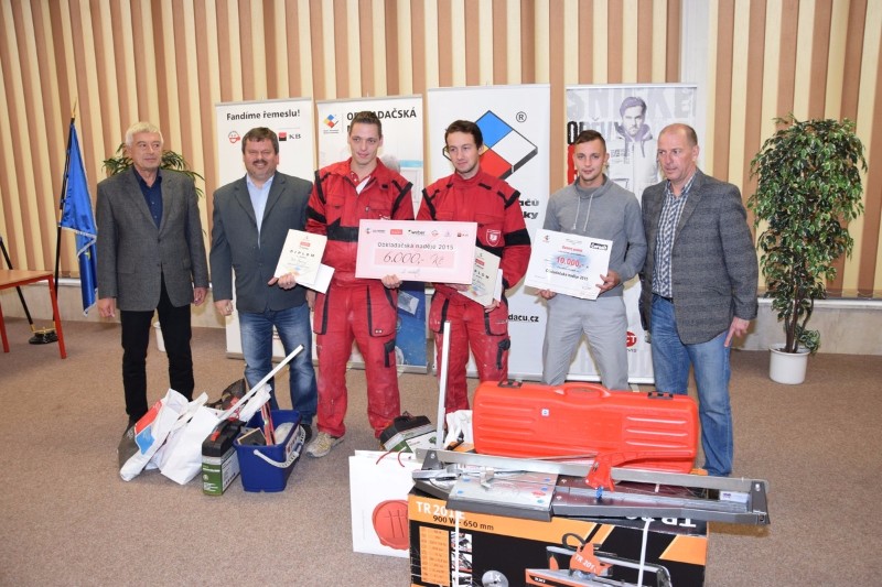 Zásluhou projektu Fandíme řemeslu!, který zastřešuje Asociace malých a středních podniků a živnostníků a Komerční banka jsme mohli mladým obkladačům, kteří se umístili na stupních vítězů, předat finanční odměnu v celkové výši 12 tisíc Kč. A jak je vídět ve fotogalerii nebyla to cena jediná a za to patří veliký dík těmto značkám – Clipper, Montolit, Bat nářadí, Rubi, Ceresit, Rako, Weber, Hasit, Cemix, Murexin, Schomburg, Sopro a Snickers.