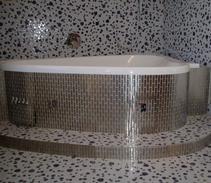 Jako jedna z mála firem jsme schopni kvalitně provést obklady a dlažby ze skleněných materiálů dodávaných firmou Kernel a.s., proto velkou část našich zakázek tvoří luxusně vybavované byty a rodinné domy.
