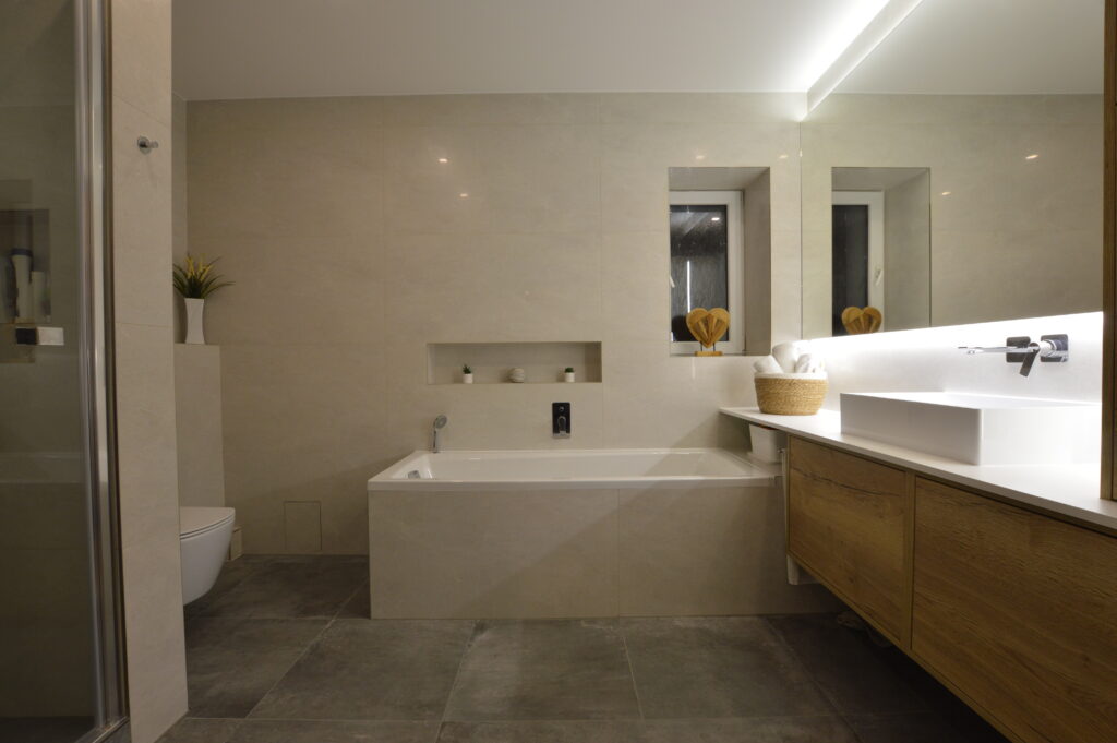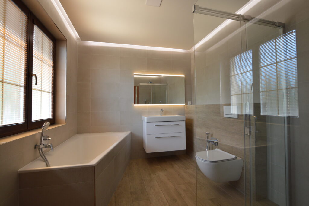 Realizace obkladů a dlažeb + kompletní rekonstrukce koupelen a interiéru.