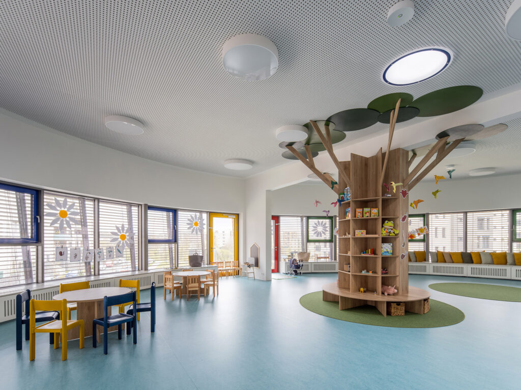 Nová mateřinka stojí na náměstí rezidenční čtvrti SUOMI Hloubětín v Praze 9. Ta zahrnuje téměř 900 bytů, prostory pro obchody a služby i relaxační zóny. Školka s kapacitou až 100 dětí, jejímž provozovatelem je společnost Mateřská škola EduArt, tvoří spolu se sousedním dětským hřištěm centrum zdejšího komunitního života.