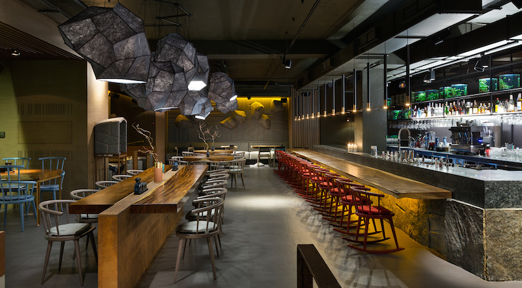 Minimalistický koncept panasijské restaurace v ukrajinském Kyjevě