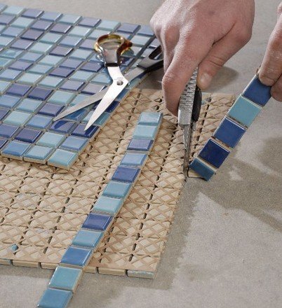 Mozaiky RAKO jsou dodávány v lepencích o velikosti 30 x 30 cm, který usnadňuje práci optimální velikostí svého formátu a díky výrobcem vytvořené přesné struktuře spár tyto lepence eliminují i případnou nerovnost průběhu spár. Ta by nepříjemně vynikla zejména ve velké obkládané ploše. Dělení lepence na menší díly je jednoduché a postačí k tomu hobby nůž nebo nůžky. Při přípravě podkladu je výhodné mít na paměti, že je možné pokládat pouze celé díly mozaiky. Řezání prvků (kostiček) je poměrně náročné a vyžaduje velkou trpělivost. V případě malých formátů 2,3 x 2,3 cm platí pravidlo, že nelze oddělit část menší než polovina kostičky.