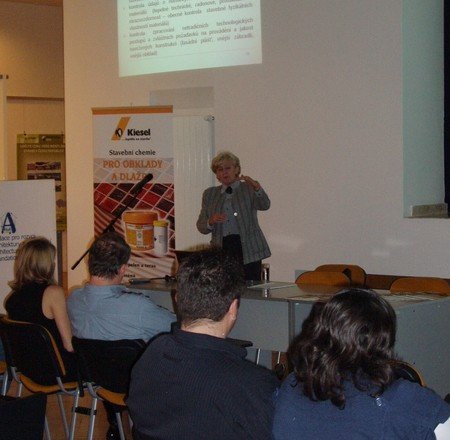 Firma KIESEL a Katedra technologie staveb ČVUT Fakulty stavební Praha připravily přednášku o legislativních požadavcích na provedení prací v interiéru staveb a praktické ukázky možností oprav podkladu. Paní Ing. Miloslava Popenková, CSc., autorizovaný inženýr a soudní znalec, ve své přednášce vysvětlila vztahy mezi projektantem, investorem a zpracovatelem. Rovněž byly probírány požadavky legislativy a následky nedodržení pravidel komunikace mezi uvedenými subjekty.