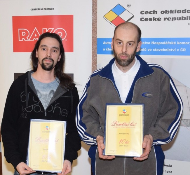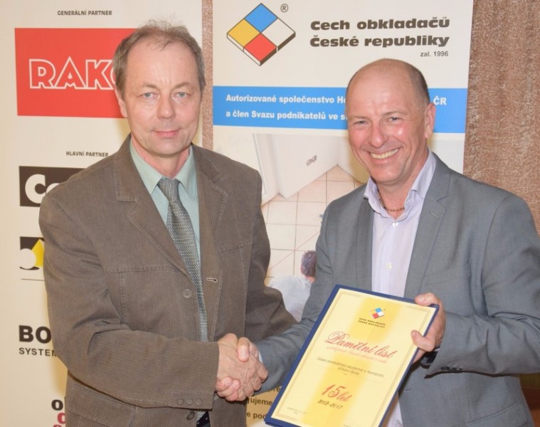 Roman Pommer, prezident cechu, předal na valné hromadě pamětní listy u příležitosti jubilejní délky členství v cechu. MC-Bauchemie s.r.o., divize Botament, je členem cechu už 20 let.