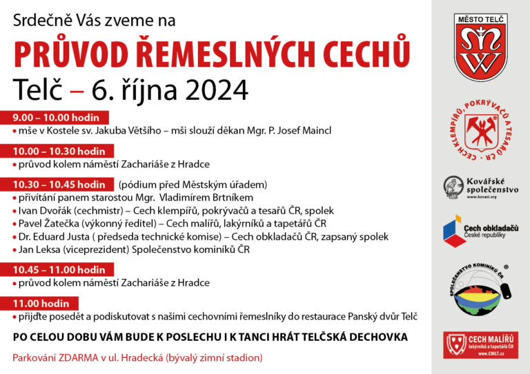 Pozvánka Telč 6.10 2024 – Průvod řemeslných cechů – program