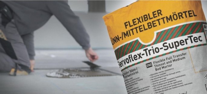 Flexibilní cementové lepidlo Servoflex TRIO SuperTec pro pokládání velké a těžké keramiky na terasách a balkónech si získalo velkou oblibu zákazníků i profesionálních zpracovatelů.