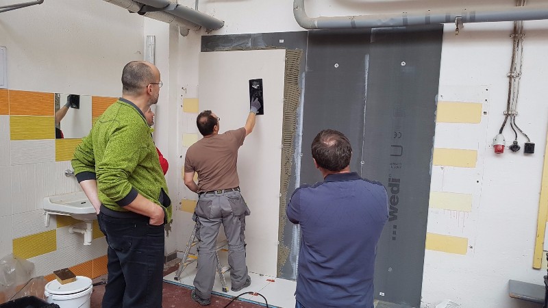 Trendem je používání velkoformátových obkladových prvků. K tomu, aby byly správně instalovány keramické obkladové prvky, musí být ale správně nalepeny. Na základě této skutečnosti jsme připravili ve spolupráci s LASSELSBERGER, BAT Nářadí,CERESIT, wedi a WEBER seminář v prostorách Střední odborné školy Jarov v Praze.