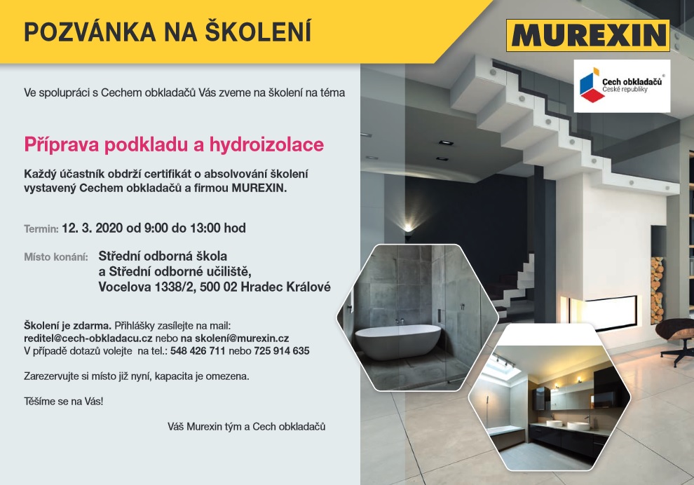 Pozvánka na školení s firmou Murexin – Hradec Králové