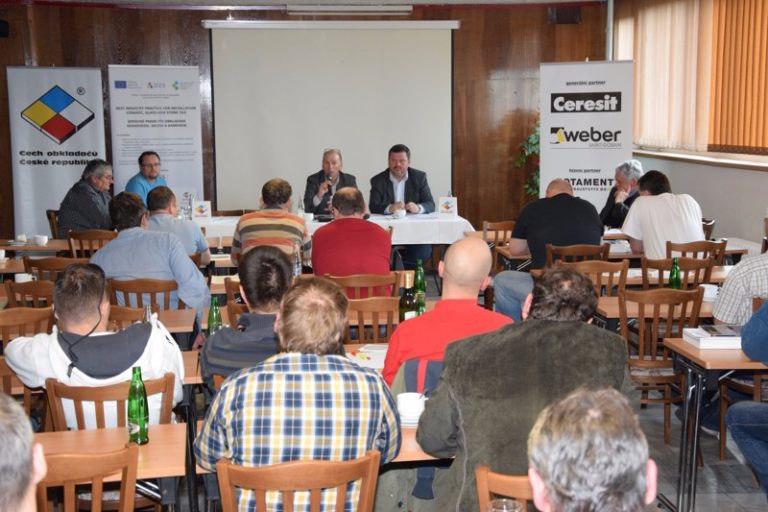 Součástí doprovodném programu bylo vytvoření smlouvy o dílo a každý člen mohl hned jednotlivá ustanovení přímo konzultovat s právníkem. Na to navazovala informace Eduarda Justy o pokračování projektu „Správné praxe při obkládání keramikou, sklem a kamenem„, kterého je cech partnerem a proto také každý účastník obdržel obě příručky Správné praxe na CD. Benefitní program pro členy cechu z oblasti pojištění představil Petr Vaněk.